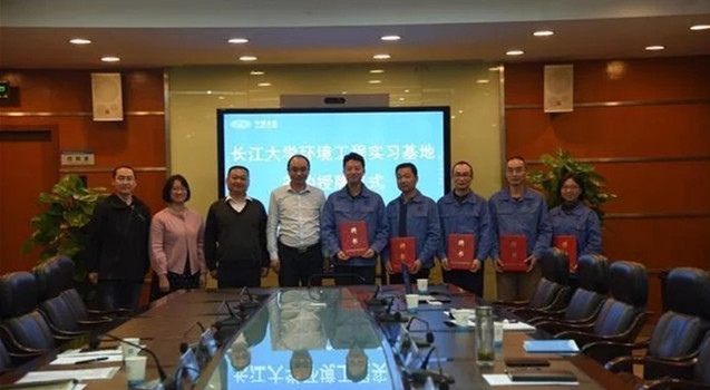 11月3日下午,院长颜学敏、荆州水务集团有限公司党委书记、总经理石明望共同为荆州市水质检测中心有限公司成为荆州市长江大学"环境工程实习基地"授牌。Bet网站 副院长吴爱斌、环工系主任魏平方、水务集团总经理助理曾兵等共同参加此次活动。