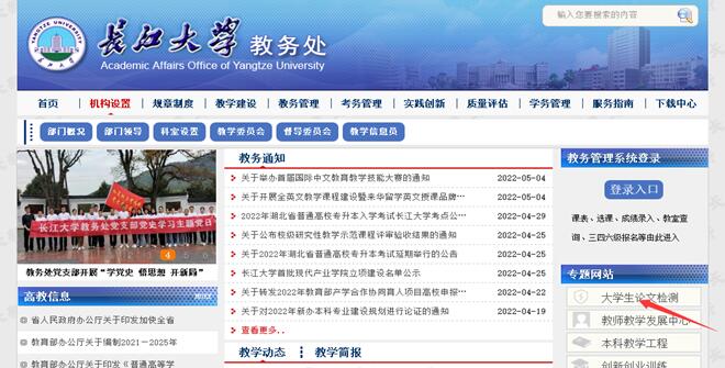 1.检测软件为中国知网“大学生毕业论文(设计)管理系统”。登陆入口://yangtzeu.co.cnki.net/Login.html?dp=yangtzeu&r=1620810189191(教务处主页-专题站-大学生论文检测)如图所示: