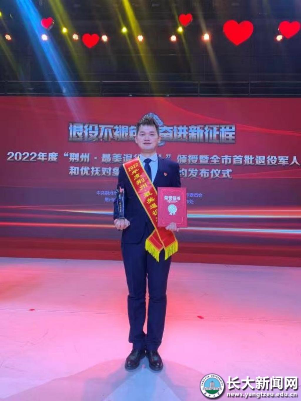 博士研究生、退役军人叶泛获此殊荣,当天参加了在荆州广播电视台举办的颁授仪式。
