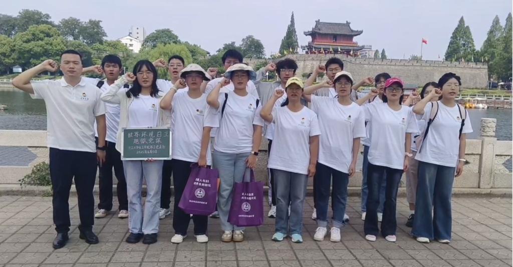 环工本科生党支部14名学生党员在魏平方、蔡略老师的带领下,齐聚荆州金凤广场,开展了“世界环保日”主题党日活动。