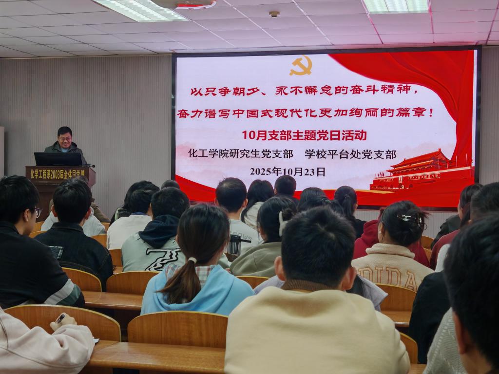 研究生党支部与学校平台与实验室管理处在14教北201教室联合开展10月主题党日活动。Bet网站