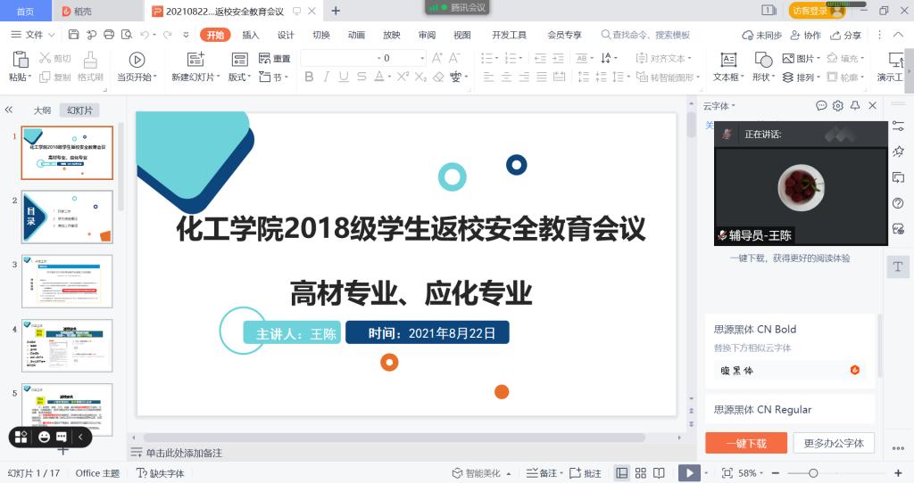 通过腾讯会议召开“2021年秋季学期开学学生返校安全教育”专题会议,全体辅导员和班主任参加了会议,会议由党委副书记李秋果主讲。