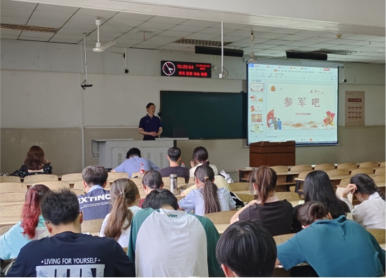 5月18日下午,Bet网站 在12教202开展2023年秋季征兵宣讲活动,全院学生通过线下或线上方式参加会议。
