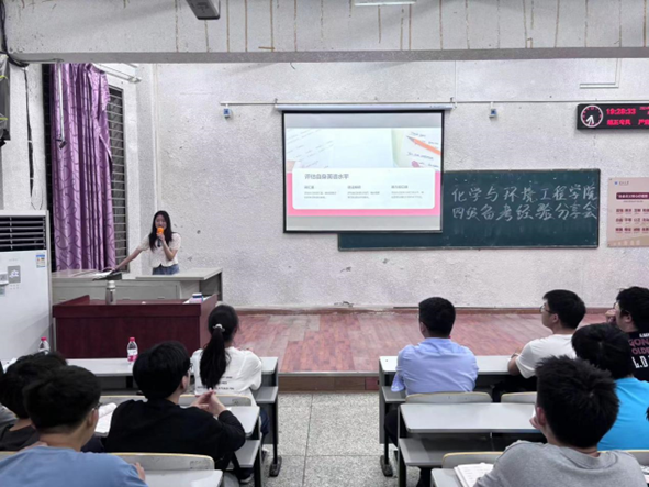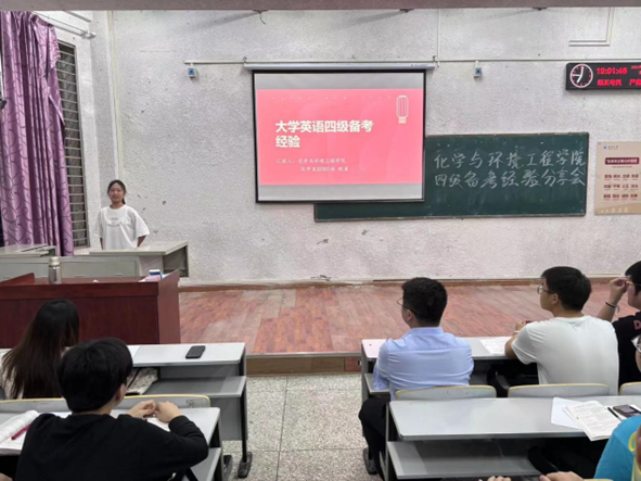 化学32301班税溪同学结合自身备考经验,围绕听力、阅读、写作、翻译四大板块,介绍了自身的学习方法;她还强调了词汇量的重要性,向同学们分享了记忆单词的方法和技巧。同时,她就如何制定合理的四级备考计划、调整备考心态等方面给出了宝贵的建议。