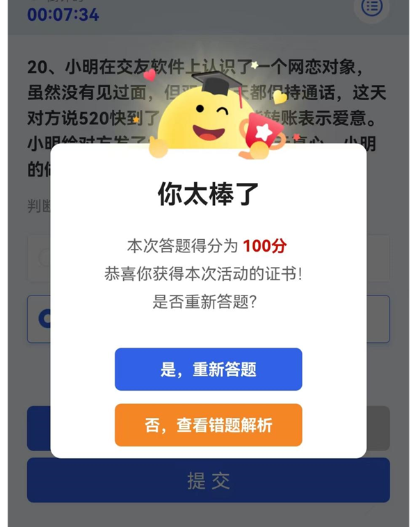 组织学生在中国大学生在线官网或微信公众号参与“守护青春 网络有你”全国大学生网络安全知识答题活动,以趣味竞赛的方式巩固所学知识。此次活动收集到众多反馈信息。师生们纷纷表示,线上课程内容充实,实用性高,答题活动形式新颖,激发了学习积极性。通过这些活动,大家不仅提升了网络安全知识水平,还增强了网络安全防范意识和能力。