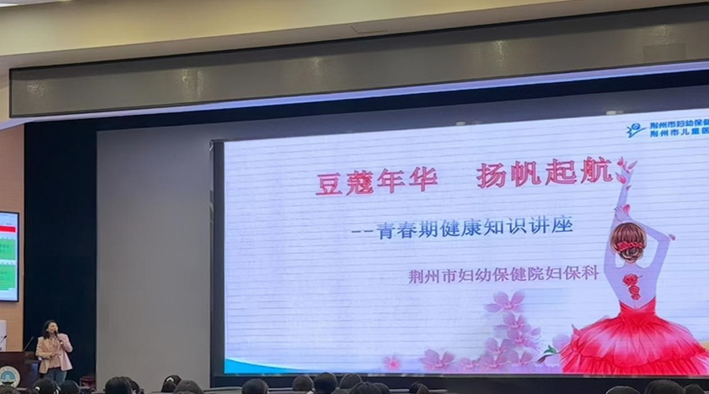 10月26日晚上,荆州市中心医院的张崇媛副主任医师为女同学们讲解青春期的健康知识,使同学们都能懂得爱护自己的身体,呵护自己的健康。