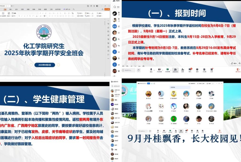以班级为单位,组织全体本科生和研究生通过腾讯会议线上方式,召开了2025年秋季学期开学安全教育主题班会。各班班主任主持会议。