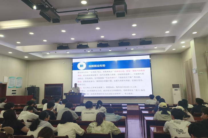 整体就业工作做了介绍,强调毕业生要准确定位,纠正求职误区,抓住校招黄金期,勇敢尝试,突破自我。