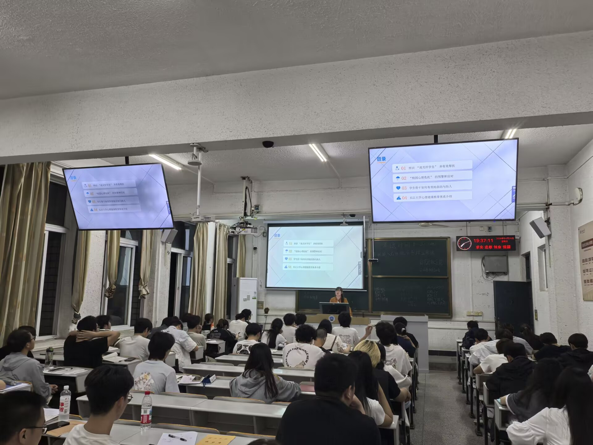 于4月23日至4月28日,在东、西校区分四场开展2026年春季学期学生骨干心理教育专题培训。本次培训由徐茵、周学素、王陈三位老师主讲,全院本科生、研究生共530余名学生干部参与学习。