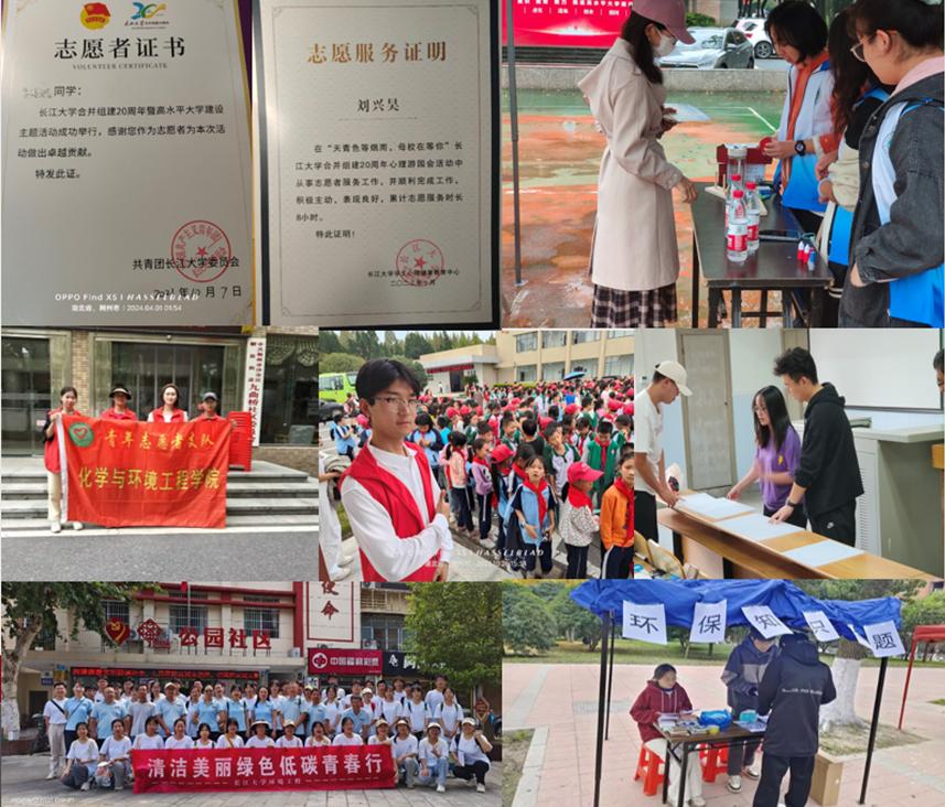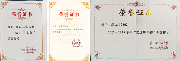 在科研创新方面,班级十余位同学进入老师课题组,参与校级大创项目4项、院级大创项目1项,曾获得湖北省第十六届化学(化工)创新成果报告会省二等奖、三等奖,中国大学生国际创新创业比赛校二等奖、三等奖等多项荣誉,目前3篇科技论文处于撰写阶段,1篇论文已录用,在社会实践方面,团支部引导团员青年积极投身社会实践与宣传工作,组织暑期“三下乡”实践活动、寒假社会实践活动,参与互联网+“红色青年筑梦之旅”活动并校级立项,与企业合作开展暑期实习实践活动。 在志愿服务方面,班级注册志愿者100%,依托第二课堂平台,团支部成员积极参加志愿实践活动,展现青春风采,创文值班、长江大学二十周年校庆志愿者、荆州马拉松志愿者、运动会、毕业晚会、炫彩跑等活动中处处可见环工12202团支部成员的身影。