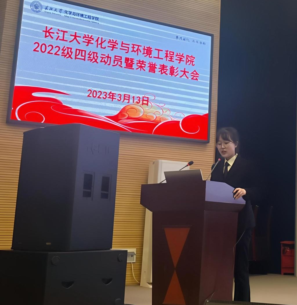 “博学笃行,求知若渴传薪火”。王嘉琪始终保持着对学术的热爱与执着,凭借严谨踏实的学习态度和科学高效的学习方法,专业必修课成绩始终名列前茅,学年排名专业第一。其中《化工原理》《精细有机合成》《高分子化学与物理》《胶体与界面化学》等专业课成绩均在90分以上,成功取得高中化学教师资格证,先后荣获长江大学一等奖学金和二等奖学金,展现了她扎实的专业学科基础。在英语学习方面,一次性通过大学英语四级和六级考试,两度获院国家英语等级考试优秀奖学金,并以四级623分的成绩在2022级四级动员大会上作四级经验分享报告。