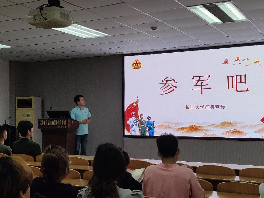 周学素老师详细解读《长江大学参军入伍学生管理办法》和高校学生服兵役的资助政策,号召同学们携笔从戎,到军营中提升自我、施展才华、报效国家。
