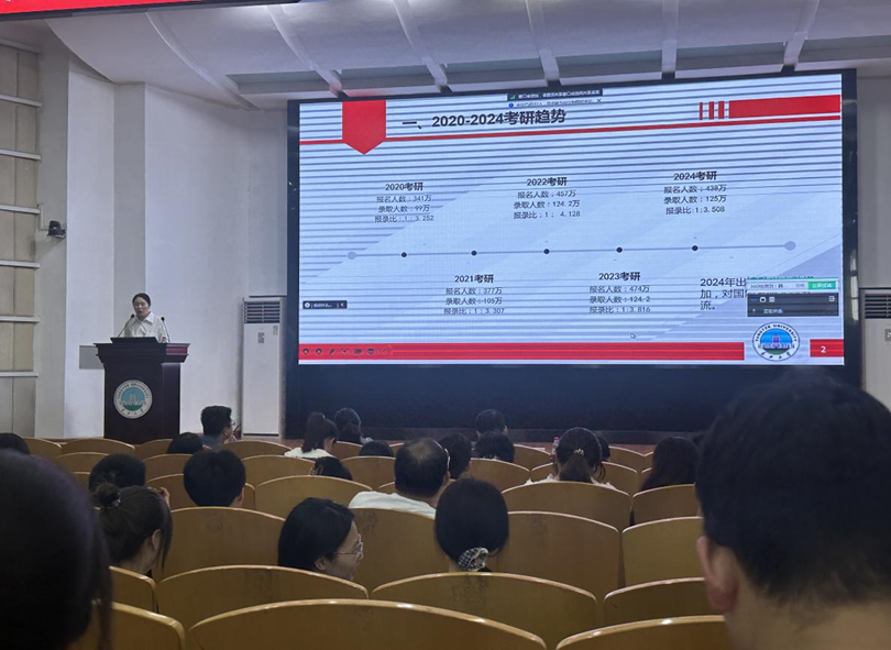 副院长肖围做2025届毕业生考研动员,并讲解2025年研究生报考政策。他就考研报名的注意事项进行了详细讲解,并对同学们提出了殷切希望,鼓励同学们树立适合自己的考研目标,提前规划、尽快行动,并分享了各种收集资料的渠道。