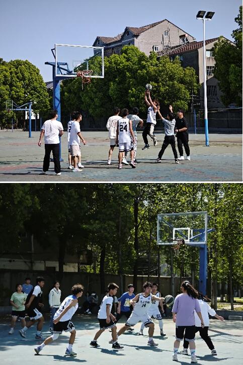 在赛场上,参赛队员英姿勃发,抢断、突破、传球、远距离投篮等展现了洋溢的青春力量,女队员们更是“巾帼不让须眉”,运球、投篮行云流水,成为球场上靓丽的风景线。每个人都在为集体而战,为集体呐喊。