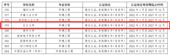 近日,中国工程教育专业认证协会发布了《关于公布西南石油大学机械工程等422个专业认证结论的通知》,我校环境工程专业顺利通过认证,有效期6年,即2022年1月至2027年12月,为今年全校专业评估(认证)工作赢得了开门红。