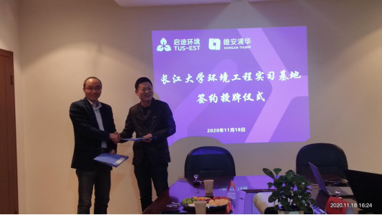 院长颜学敏和荆州浦华荆清水务有限公司总经理肖建平签订了环境工程专业校外实习实践基地共建协议,长江大学实验室与国有资产处副处长彭礼进颁发了“长江大学教学实习基地”牌,Bet网站