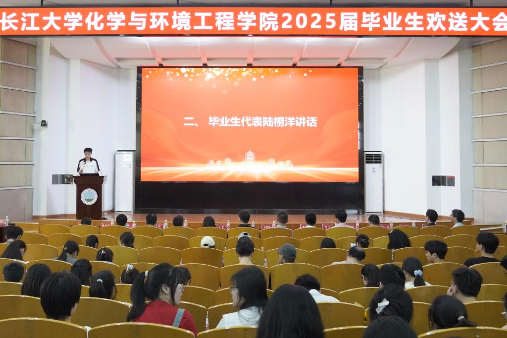 荣获学校第十九届万人创百星学习明星、十佳之星的陆栩洋同学作为毕业生代表分享心得。他结合自身经历,回顾过去四年的大学时光,讲述了在科研探索与学习实践中的成长感悟,展现了化工人不仅在学术领域追求卓越,更心怀奉献社会的责任担当,其真诚的分享引发全场共鸣。