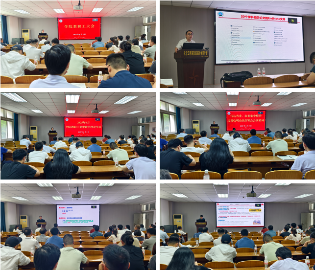 2025年6月5日下午,Bet网站 在14-北201会议室召开全院教职工大会,传达了省市会议精神和学校ESI学科发展现状及提升计划、部署了Bet网站 近期重点工作。党委书记王丽主持会议。 发展规划处尹军良副处长受邀从学校ESI学科建设现状分析、实施路径及支持政策、高被引学者评选标准等方面,对长江大学ESI学科提升计划进行了全面的解读。 书记王丽带领全院教职员工开展了政治理论学习、并传达省委、市委集中整治违规吃喝动员部署会会议精神。王书记带领大家学习了习近平总书记在河南考察的讲话、致复旦大学建校120周年的贺信和习近平总书记文章《锲而不舍落实中央八项规定精神,以优良党风引领社风民风》,以及对王忠林讲话精神做了传达。通报了2起党员干部违规吃喝典型案例,传达了湖北省、荆州市关于整治违规吃喝动员部署会会议精神。副书记杨会军带领大家共同学习了《党政机关厉行节约反对浪费条例》,重点学习了条例第四章公务接待和第六章会议活动的相关内容,希望全院教职工认真学习相关规定,坚决抵制浪费之风,违规吃喝之风。 会上,副院长吴爱斌向全体老师通报了专业监测评估、本科专业设置和动态调整、教学事故通报等重点和常规教学工作,尤其对教学事故问题希望全体老师要引以为戒,时刻重视教学工作,不要再次出现教学问题,更不要出现教学事故。 会议还向教职工通报了“两优一先”的评选情况、博士点建设的相关情况以及学科竞赛情况获奖情况。 (审核:王丽;编辑:王志权)