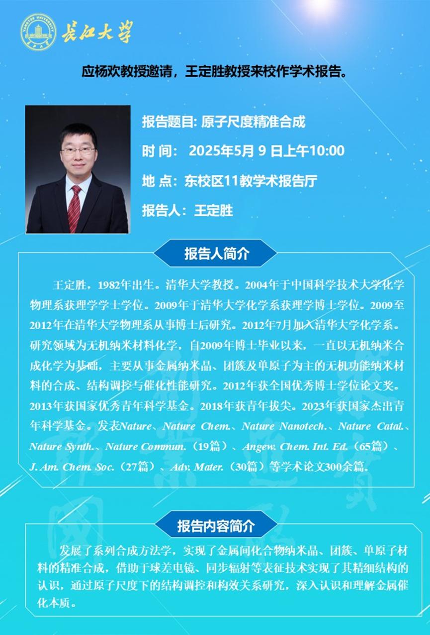 长江化工讲坛:原子尺度精准合成