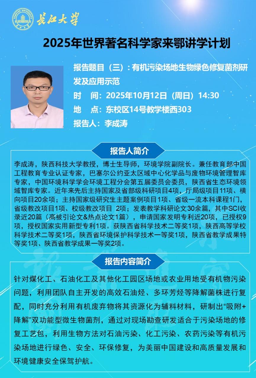 长江化工讲坛:有机污染场地生物绿色修复菌剂研发及应用示范