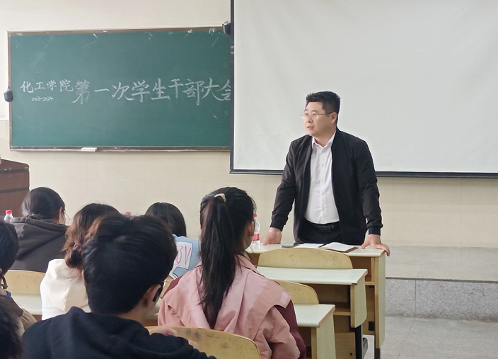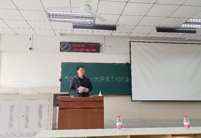 会议伊始,辅导员周学素老师依次就各班班委、学生会、青支队各部门本学期的重点工作做了详细介绍与安排。随后,周老师讲解中秋国庆假期注意事项,强调安全问题的重要性,叮嘱各班在放假之前及时召开安全教育班会。