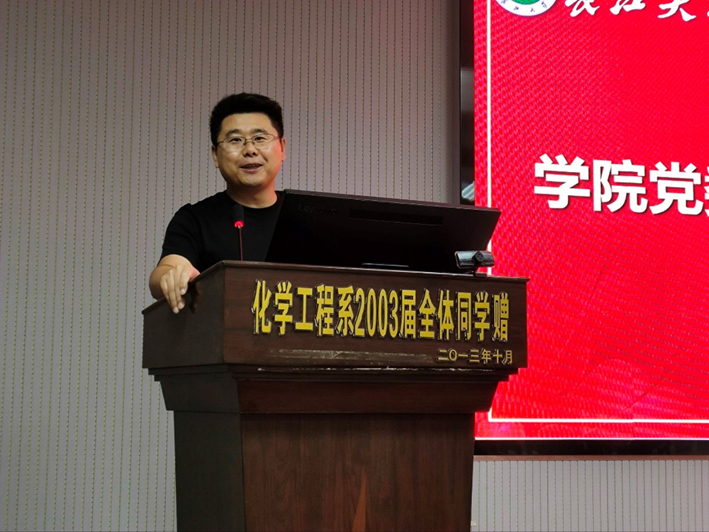 周学素老师讲话,他对上一届学生会成员表达了赞扬和感谢,对新一届学生会成员表达了殷切的期望,他强调学生会是一个大家庭,希望成员们能够团结合作,和谐相处,携手共进。